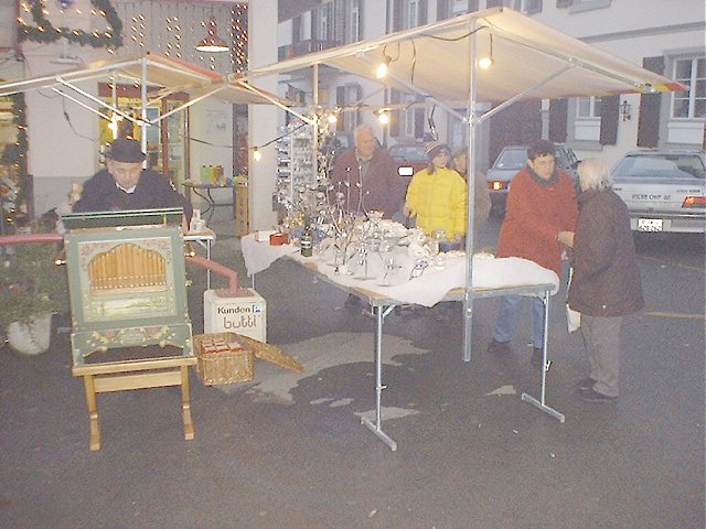 ... Vater Butti lockt einmal mehr die Gäste mit seiner Drehorgelmusik ...