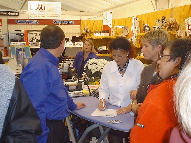 ... Eines der vielen Geschäfte wird abgeschlossen: ein Bestellschein wird ausgefüllt ...