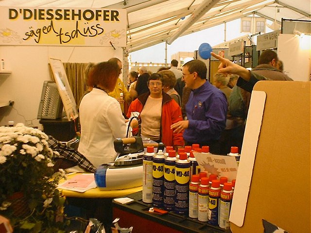 ... Pius Butti preist die Bügelstation an; die Dame ist aber noch nicht überzeugt ...