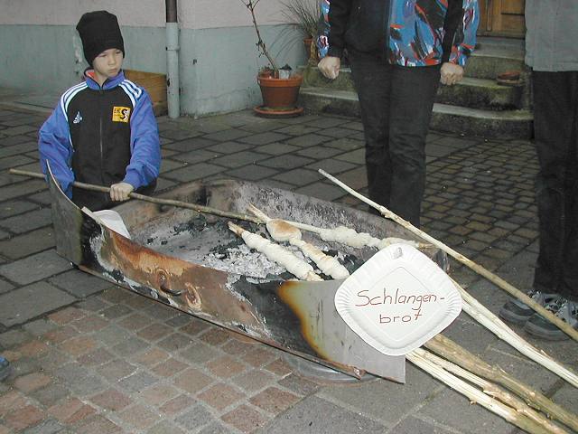... Mit grossem Vergnügen und viel Geduld backen die Kids das Schlangenbrot ...