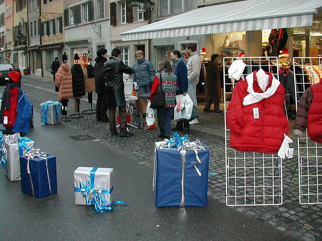 ... Mit Phantasie und Ideen gestalteter Laden-Vorplatz! Und die Leute bleiben stehen ...