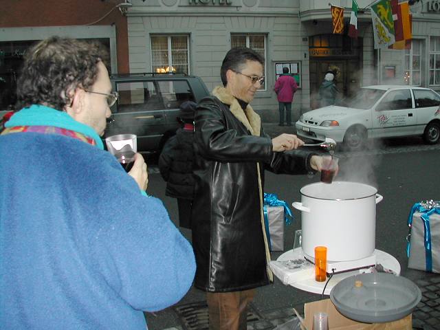 ... Daniel Nobs schenkt seinen Kunden (und den Besuchern) Glühwein aus ...
